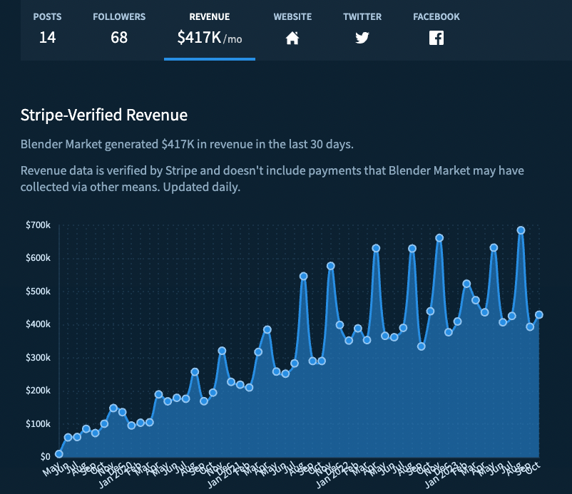 市場多大:每個月417kMRR,這個收入其實很高了,在IndieHacker上很少看到收入這麼高的網站。