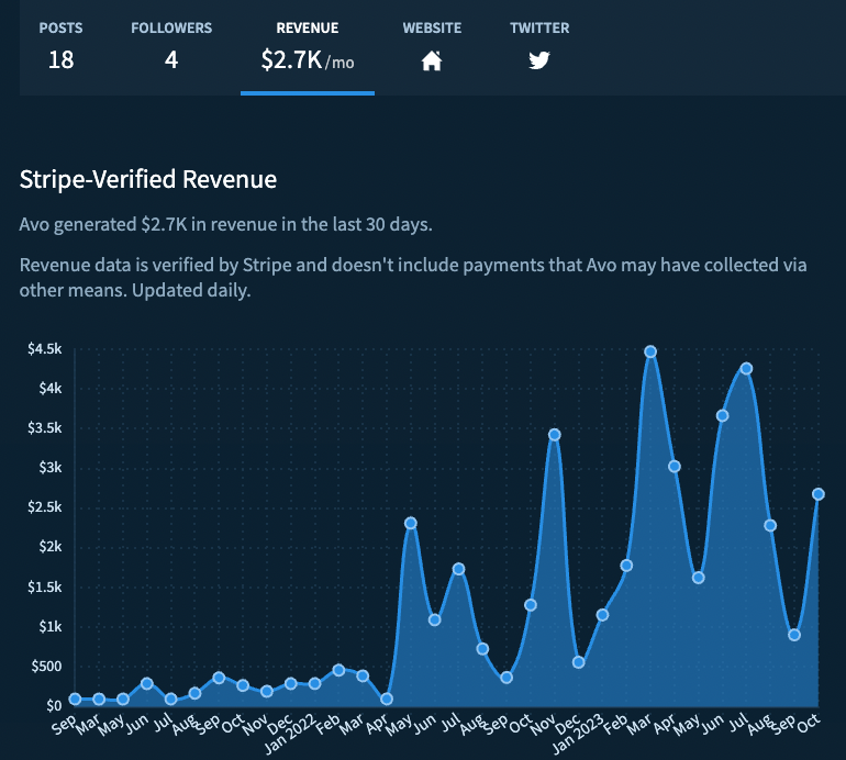 市場多大:每個月2.7kMRR,這個收入不算高,相當於只有10個人購買。話說跟avo類似的jumpstartrails pro的github member有1700多人。換算基本方案249或是進階方案的749美金,相當於ARR有420k到1273k之間。